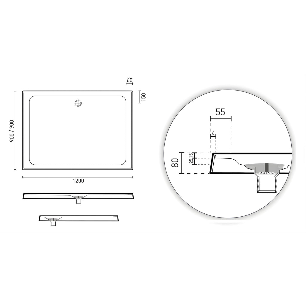 DECINA PRELUDE REAR WASTE SHOWER BASE 1200MM GLOSS WHITE