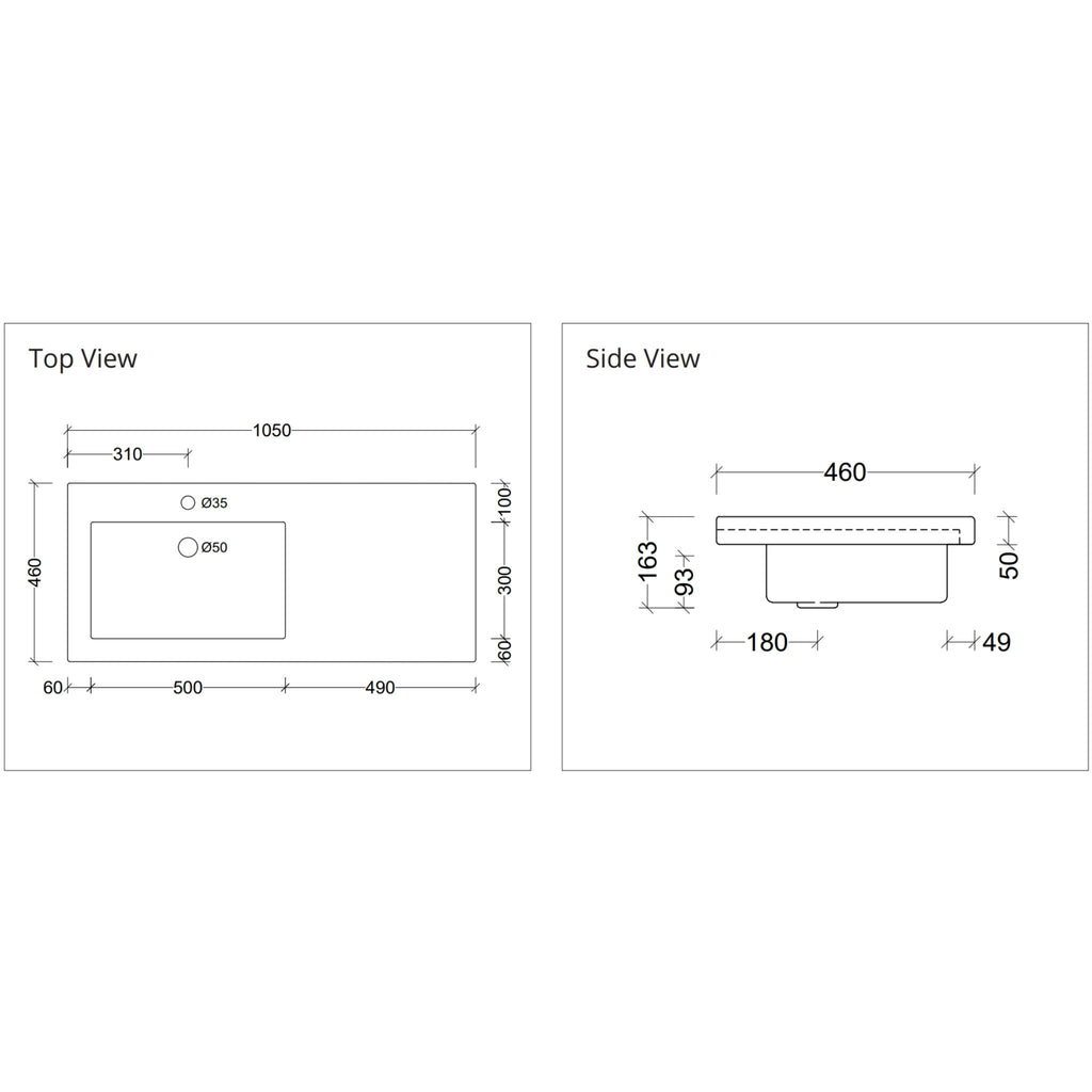 The Duroclass Monaco Major offset single bowl undermount vanity top is designed for functional, modern bathroom layouts. Made in Australia from premium mineral composite, it features a gloss white finish with a Mitsubishi SHINKOLITE™ PX sanitary-grade surface for superior heat and stain resistance. Available in multiple sizes, the offset rectangular bowl maximises bench space while offering a hygienic, anti-bacterial surface, precision thermoformed fit and durable performance tested to Australian Standard AS1730.