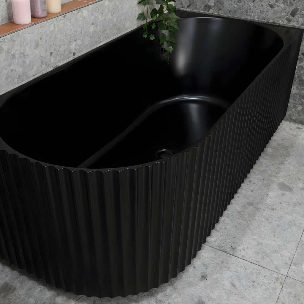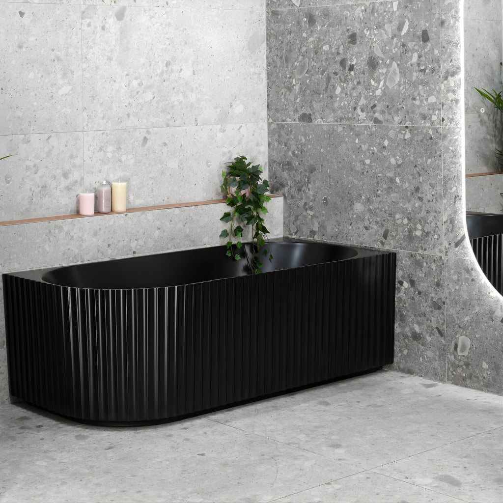 ENFLAIR AGORA GROOVE FLUTED RIGHT CORNER BATHTUB MATTE BLACK (AVAILABLE IN 1500MM AND 1700MM)
