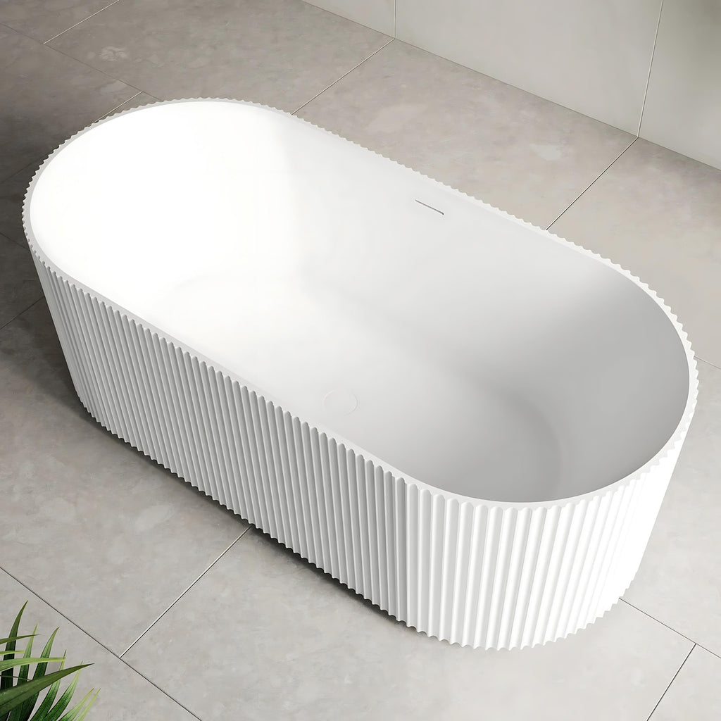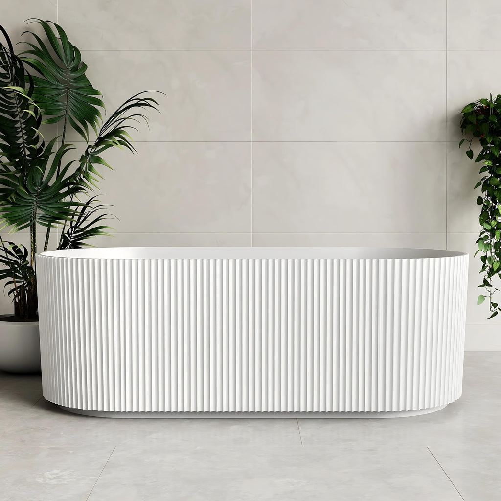 ENFLAIR BRIGHTON GROOVE FLUTED FREESTANDING BATH WITH OVERFLOW MATTE WHITE 1700MM