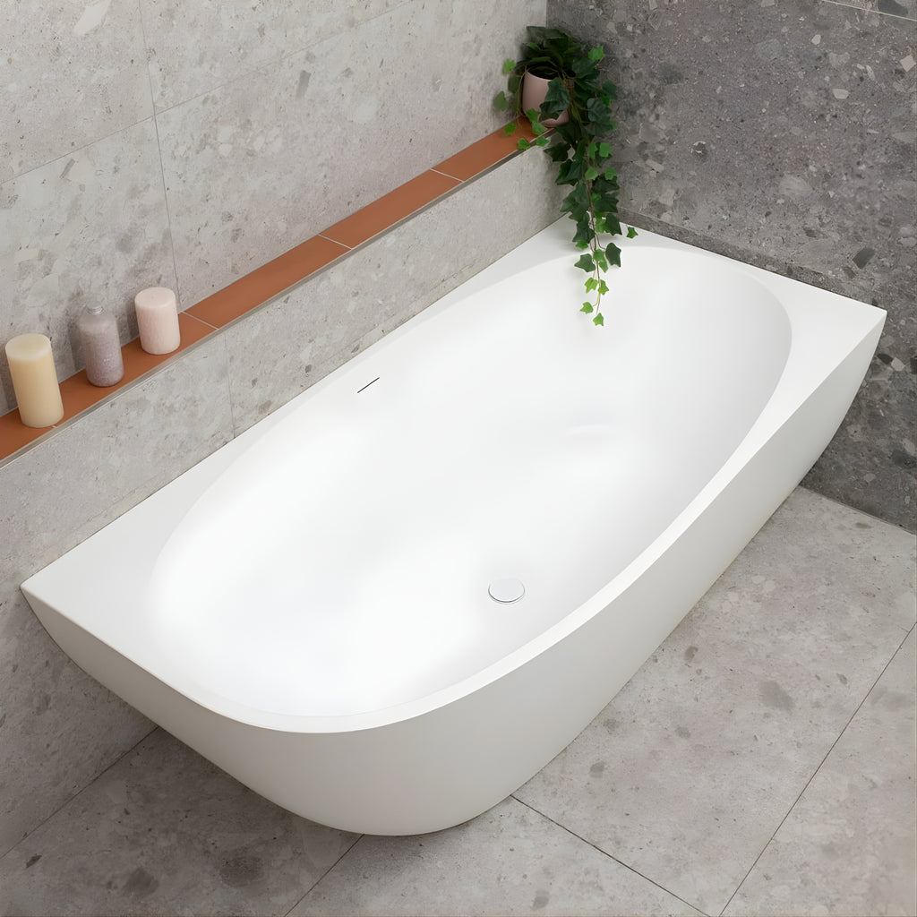 The Enflair Byron Egg Right Corner Freestanding Bath creates a luxurious focal point in contemporary bathrooms. Finished in elegant matte white acrylic, this overflow bathtub offers generous bathing comfort with multiple size and capacity options. Designed with adjustable legs and a centred waste position, it allows precise installation against right corner walls. Ideal for modern bathroom layouts, it delivers durability, easy maintenance, and refined relaxation. Plug and waste optional for residential and commercial bathroom projects.