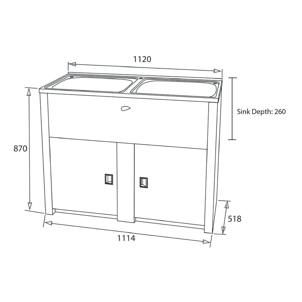 EVERHARD CLASSIC 45L + 45L STAINLESS STEEL TWIN LAUNDRY UNIT 1120MM WHITE: