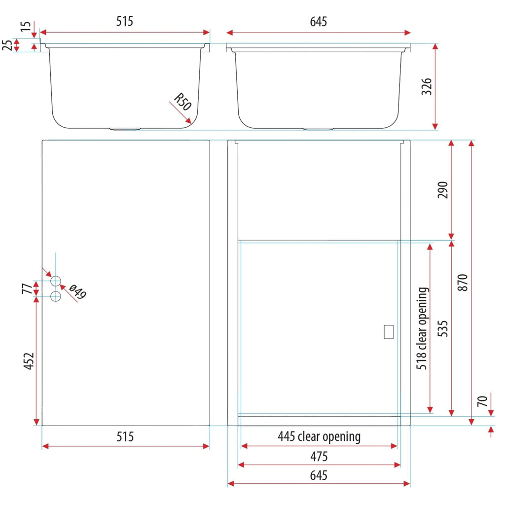 - Dimensions: 645mm X 870mm X 515mm