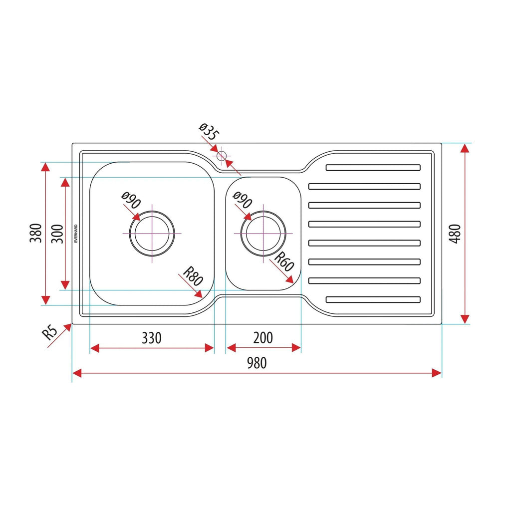 EVERHARD CLASSIC SQUARE 1.5 BOWL & DRAINER KITCHEN SINK STAINLESS STEEL 980MM