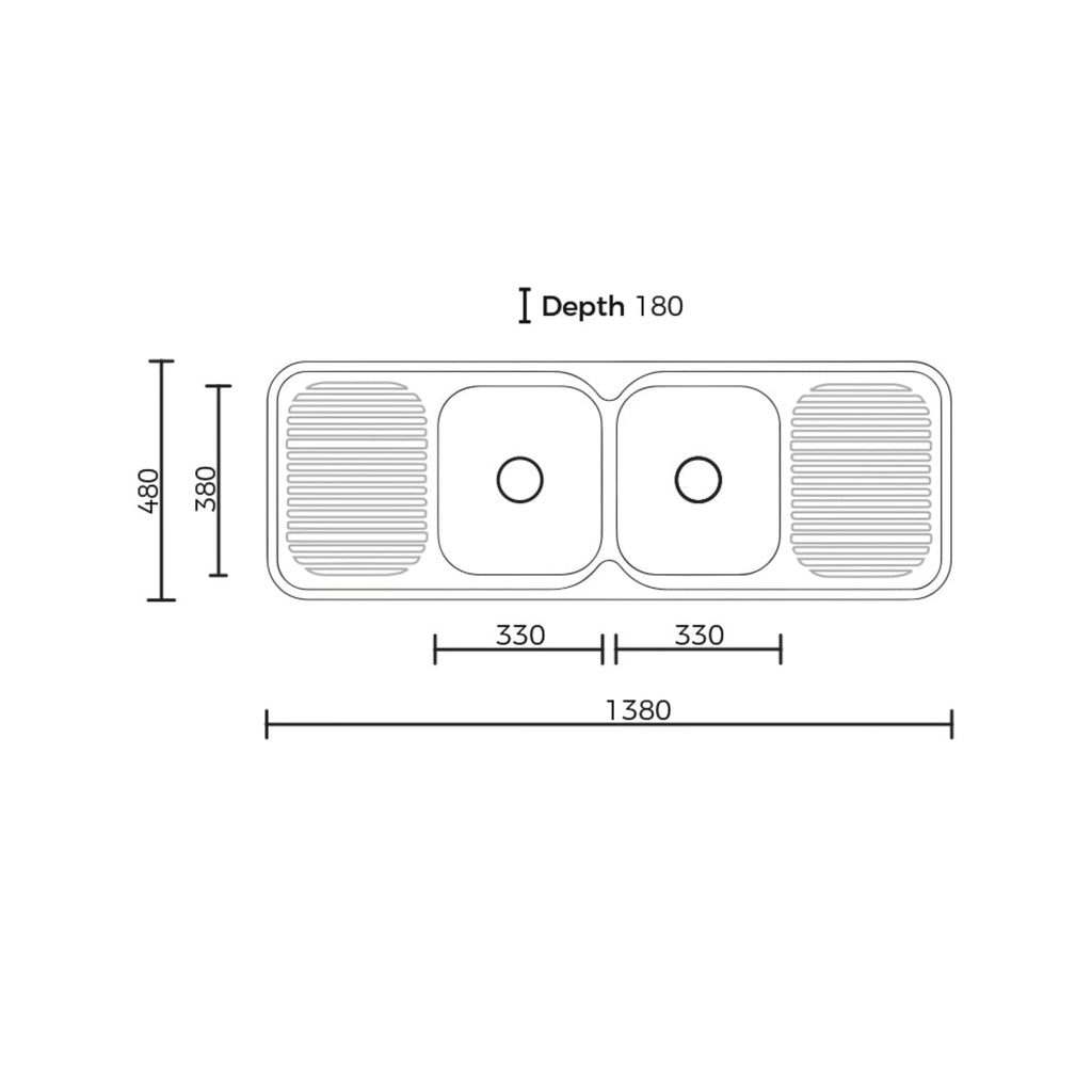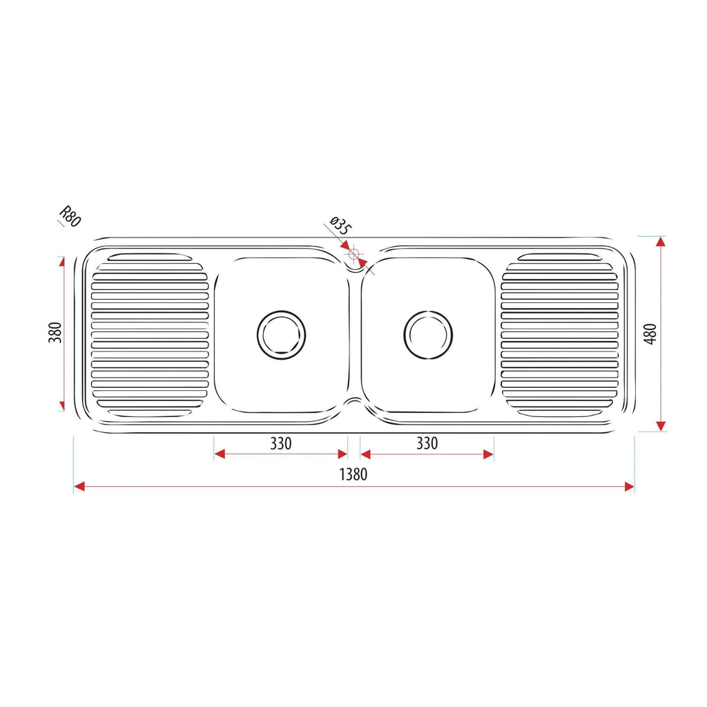 EVERHARD CLASSIC STANDARD 2 BOWL & 2 DRAINER KITCHEN SINK STAINLESS STEEL 1380MM