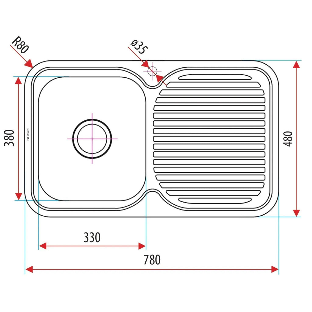 EVERHARD CLASSIC STANDARD SINGLE BOWL & DRAINER KITCHEN SINK STAINLESS STEEL 780MM