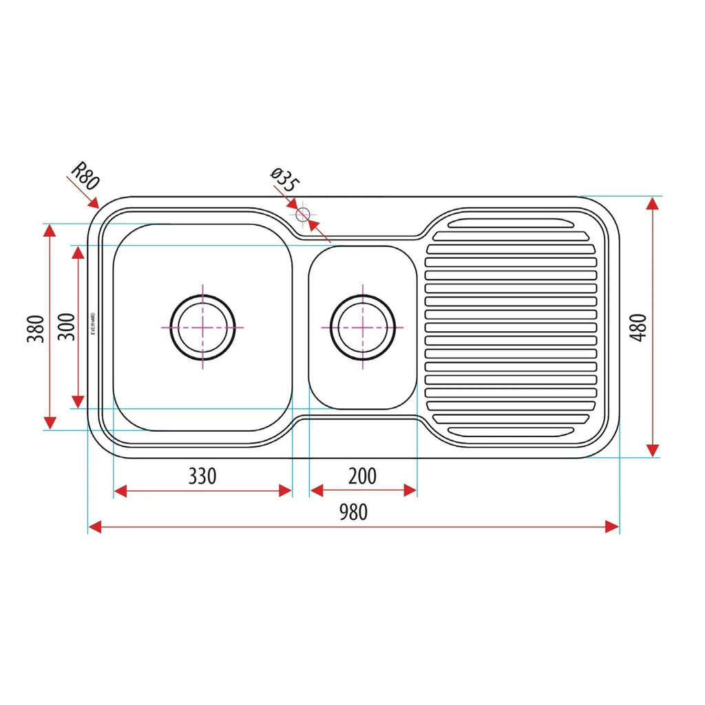 EVERHARD CLASSIC STANDARD 1.5 BOWL & DRAINER KITCHEN SINK STAINLESS STEEL 980MM