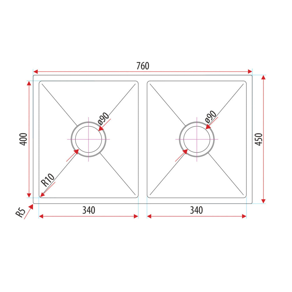- Radius 10mm Internal Corners – Easy to Clean