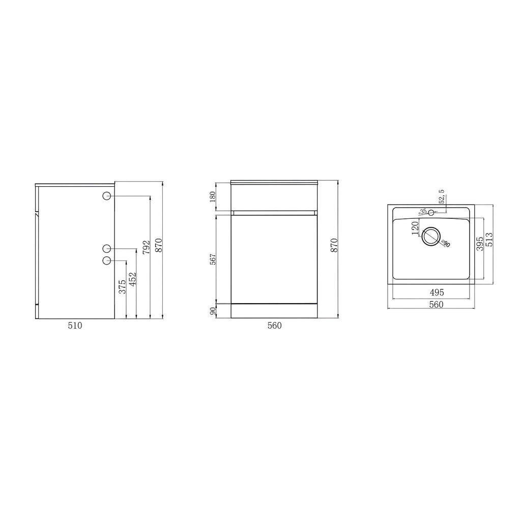 - Dimensions: 560mm X 870mm X 510mm