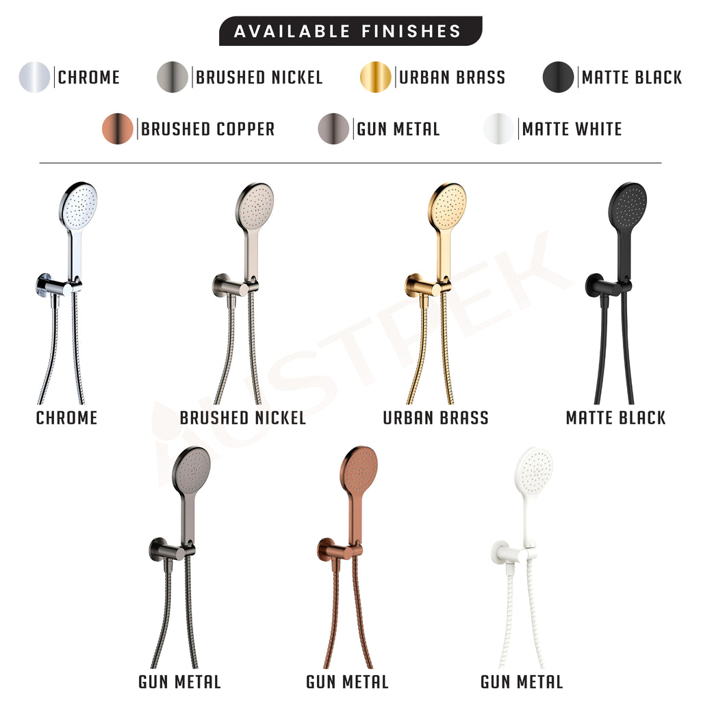 - Material: Solid Brass (Plate and Hose) | ABS (Hand Shower)