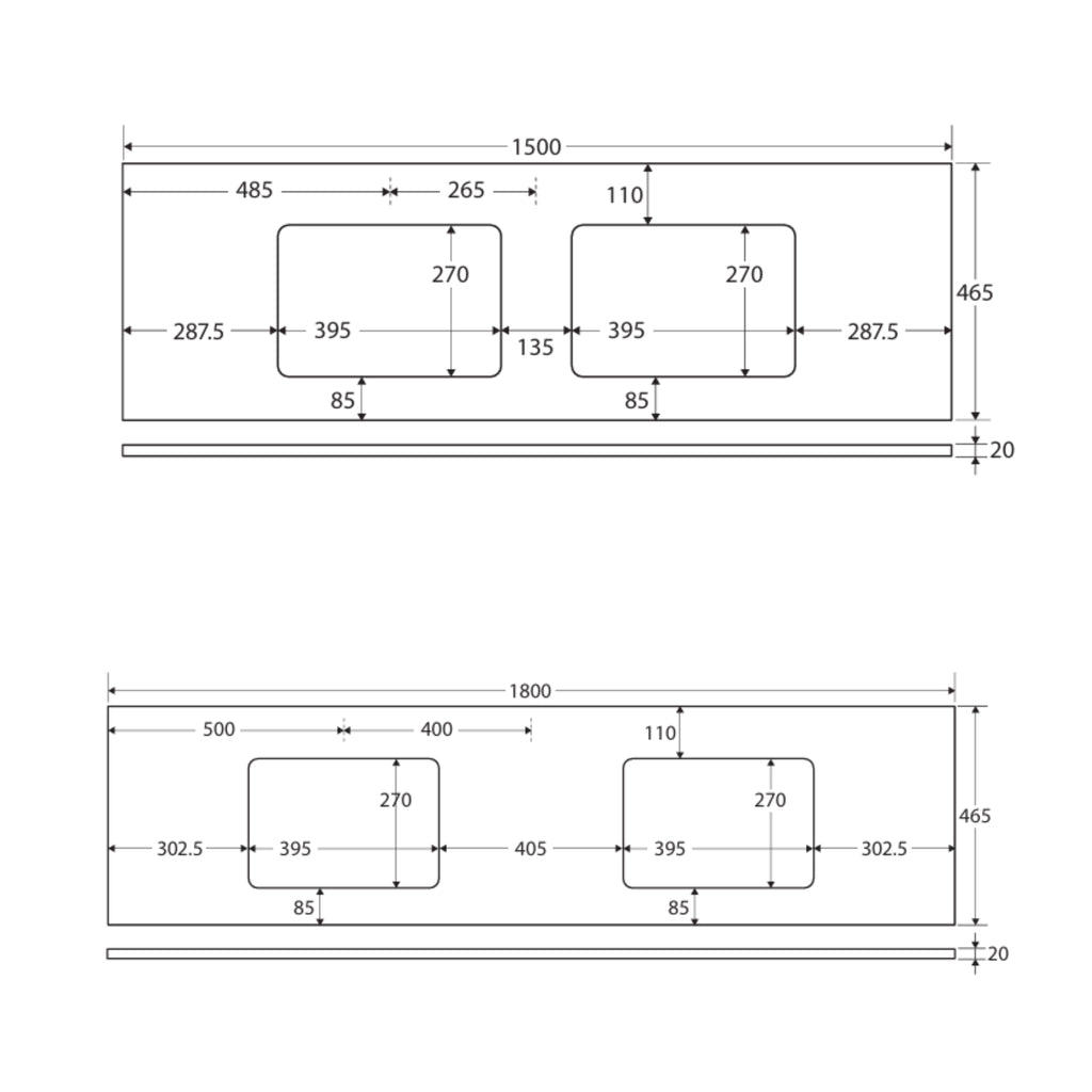 FIENZA ROMAN SAND SILICA FREE RECTANGULAR STONE BENCHTOP WITH DOUBLE UNDERMOUNT BASIN HOLES (AVAILABLE IN 1500MM AND 1800MM)