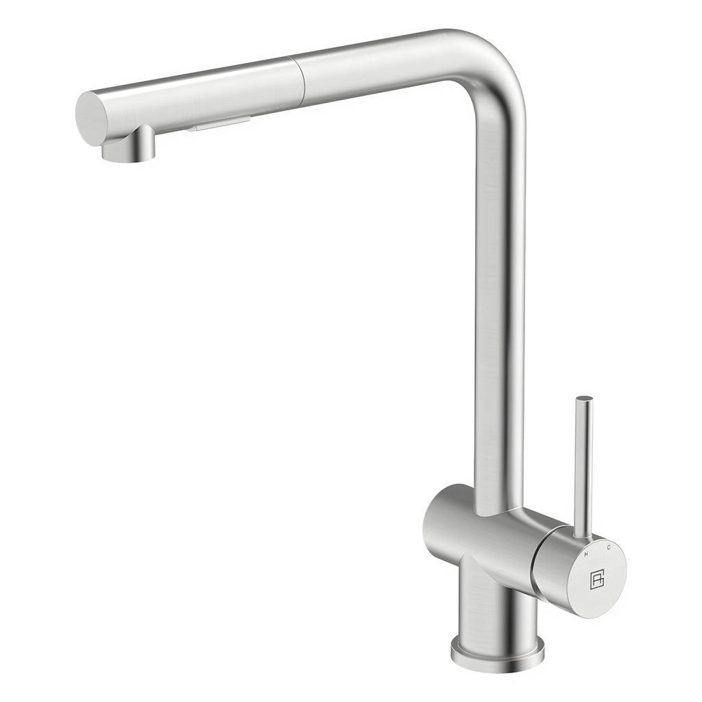 GARETH ASHTON 304 GRADE SQUARE NECK PULL-OUT SINK MIXER WITH DUAL SPRAY BRUSHED STEEL