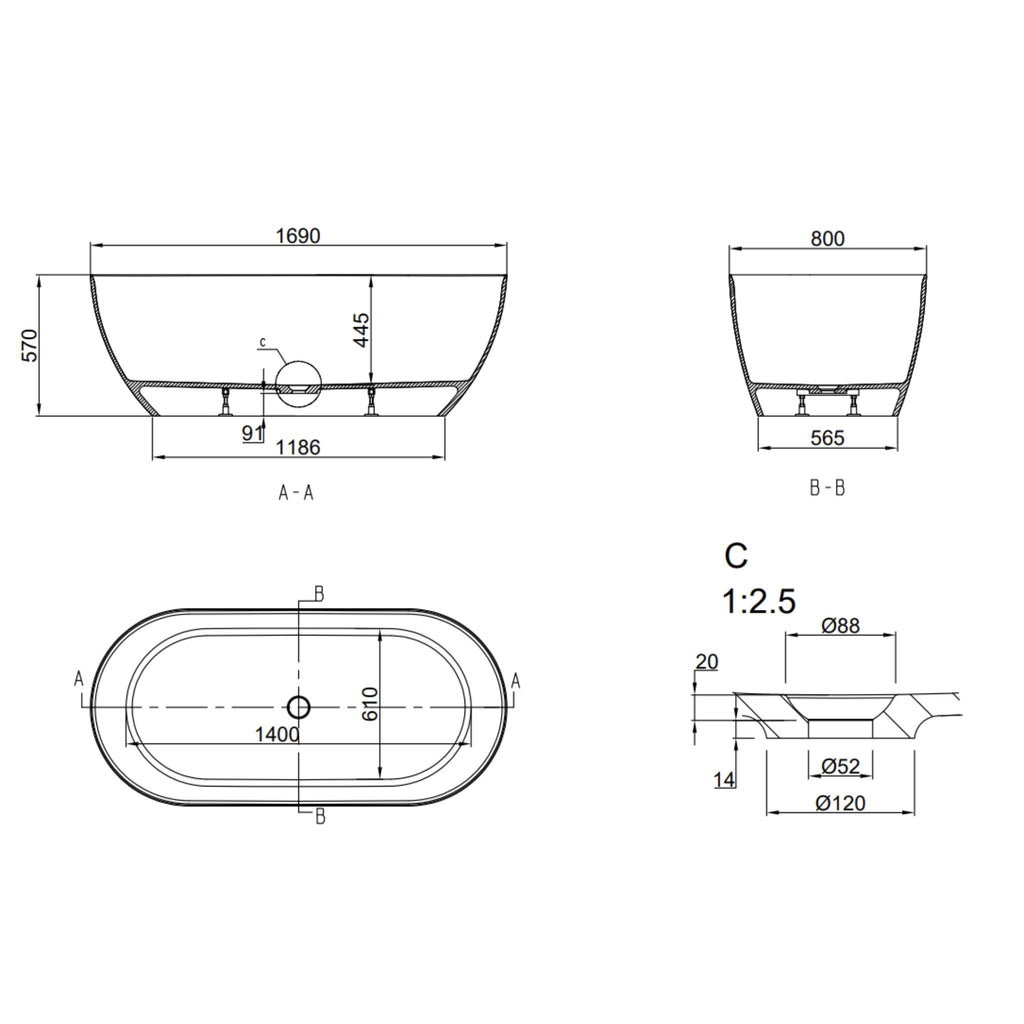 GARETH ASHTON BYRON FREESTANDING BATHTUB GLOSS WHITE (AVAILABLE IN 1500MM AND 1690MM)