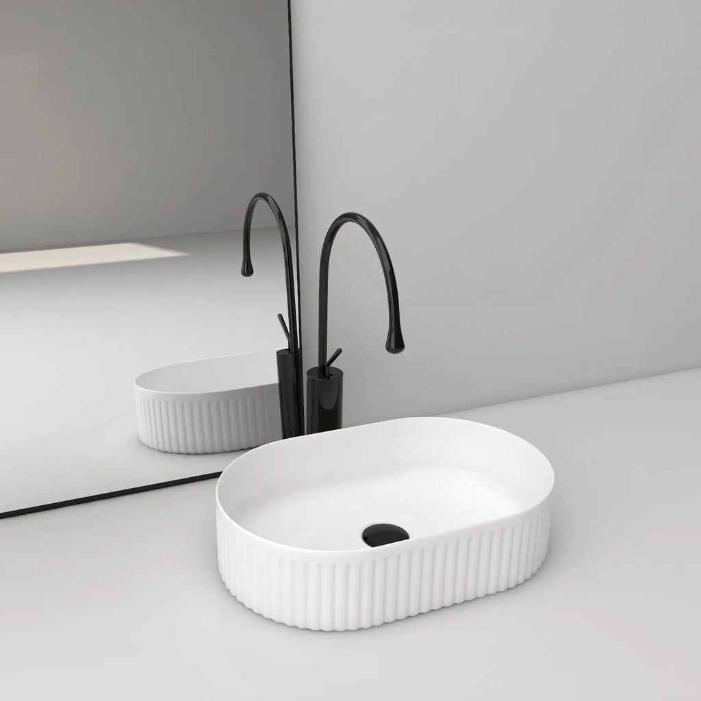 The Infinity Above Counter Ceramic Basin Oval Matte White 500mm delivers modern sophistication with its smooth oval shape and premium ceramic construction. Available in Gloss White, Matte White, and Matte Black, it suits a variety of contemporary bathroom styles. Designed for above-counter installation, its 500mm size offers ample functionality while maintaining a sleek appearance. Supported by a 5-year product replacement warranty and 1 year labour, this basin combines durability, elegance, and long-term peace of mind.