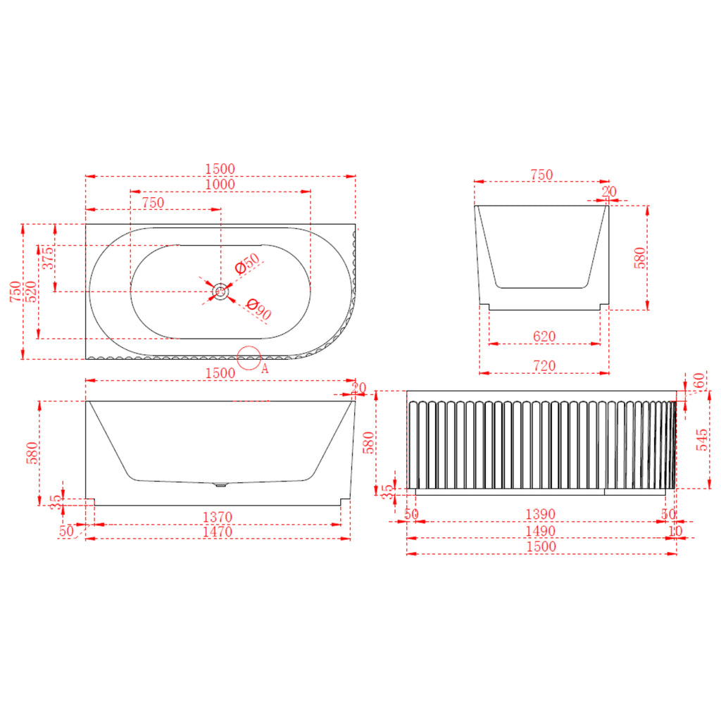 INFINITY ARTEMIS LEFT CORNER BATHTUB MATTE WHITE (AVAILABLE IN 1500MM AND 1700MM)