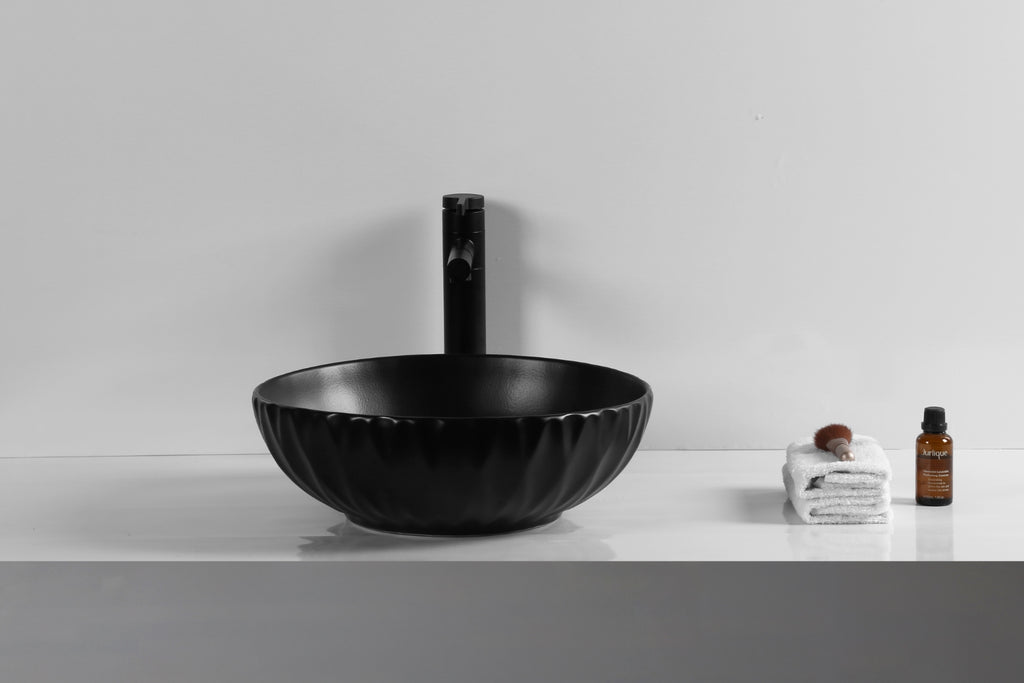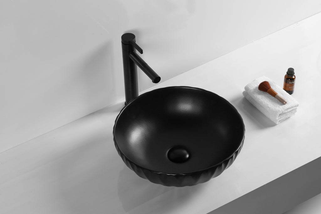 INFINITY CERAMIC BASIN ABOVE COUNTER ROUND MATTE BLACK 400MM