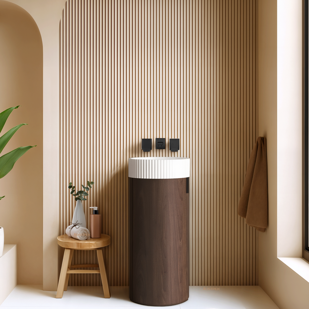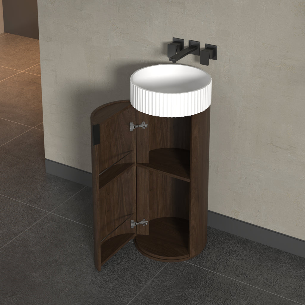 INFINITY FELIX WALNUT 390MM FREESTANDING VANITY WITH FLUTED SOLID SURFACE BASIN