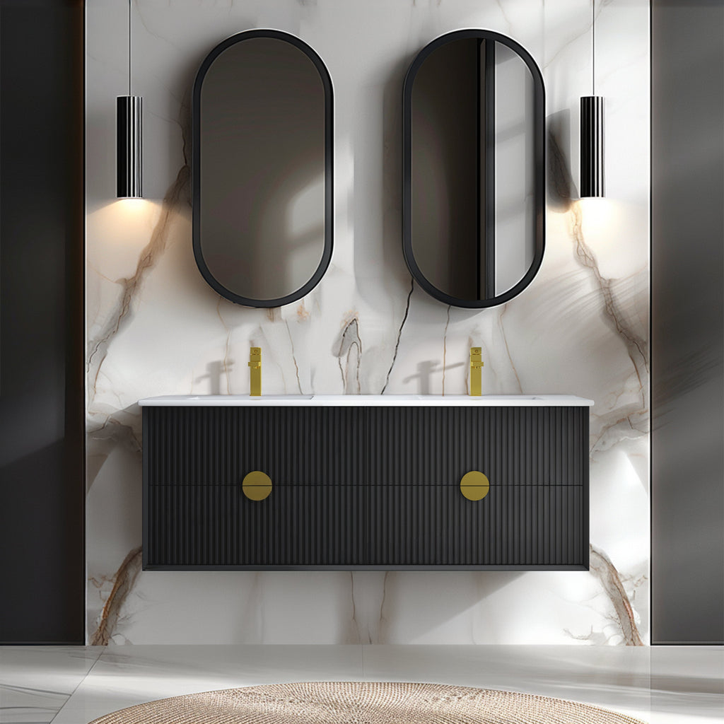 INFINITY KINGO MATTE BLACK 1500MM DOUBLE BOWL WALL HUNG VANITY