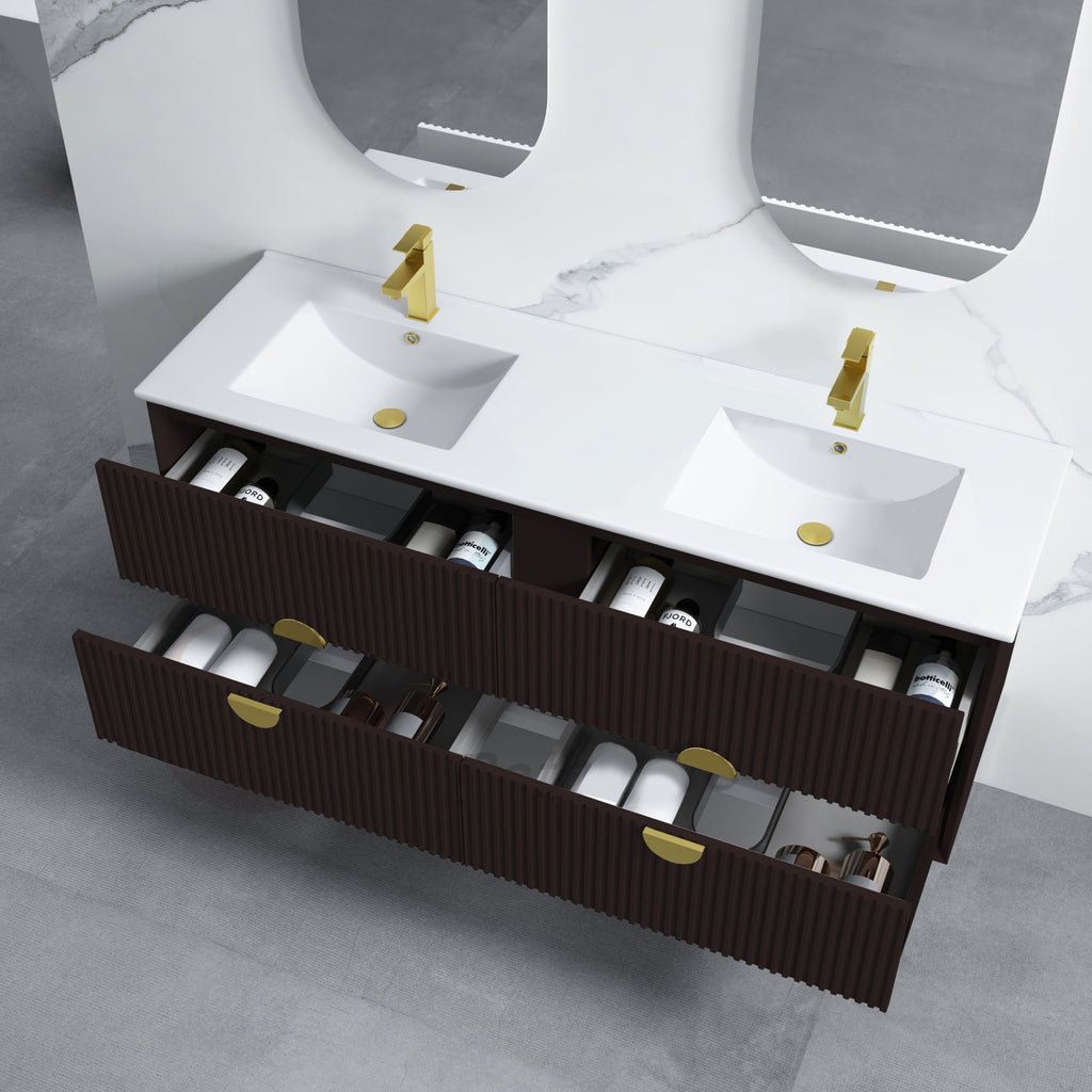 Introducing the Infinity Kingo Matte Black 1500mm Double Bowl Wall Hung Vanity, now available in striking Matte White. Elevate your space with this sleek design, offering a 5-year cabinet replacement warranty and a 1-year parts product replacement warranty. Its spacious double bowls and sophisticated finish redefine luxury. Crafted for durability and style, this wall-hung vanity brings a perfect blend of functionality and elegance to your bathroom, creating a statement of modern aesthetics and reliability. Redefine your bathroom experience with this exceptional addition.