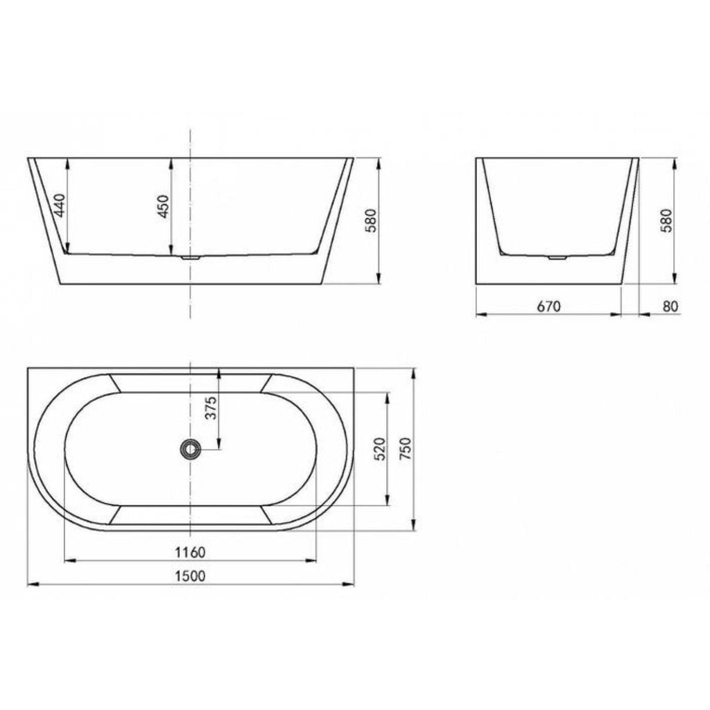 - Verona 1500mm and 1700mm Back-To-Wall Freestanding Bath Matte White