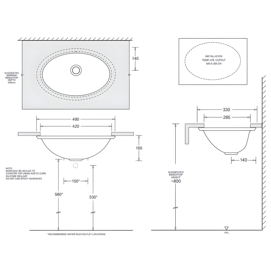 - Mounting: Under Counter