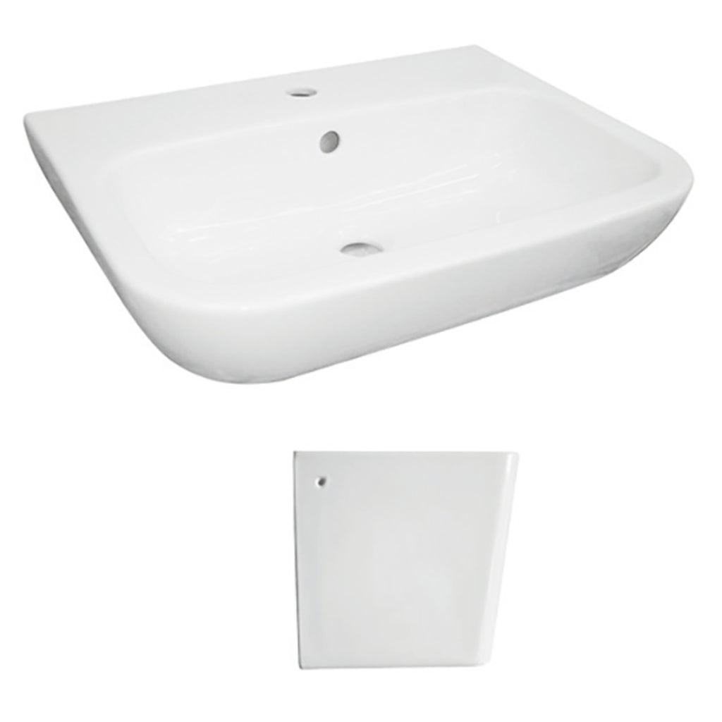 JOHNSON SUISSE EMILIA WALL HUNG BASIN ONE TAPHOLE WITH SHROUD AND CHROME POP-UP WASTE WHITE 560MM
