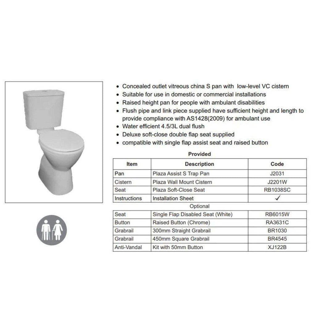 - Flush Pipe and Link Piece Supplied Have Sufficient Height and Length to Provide Compliance with AS1428.1(2021) for Ambulant Use