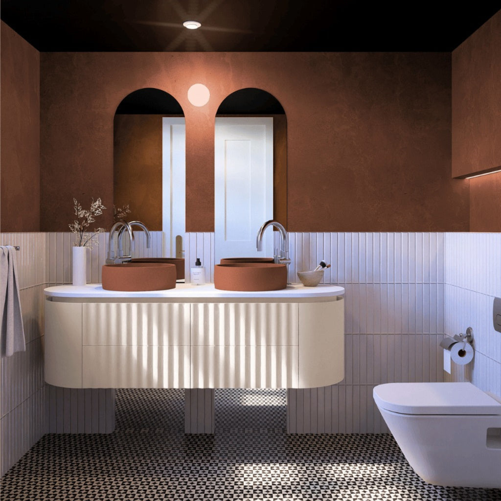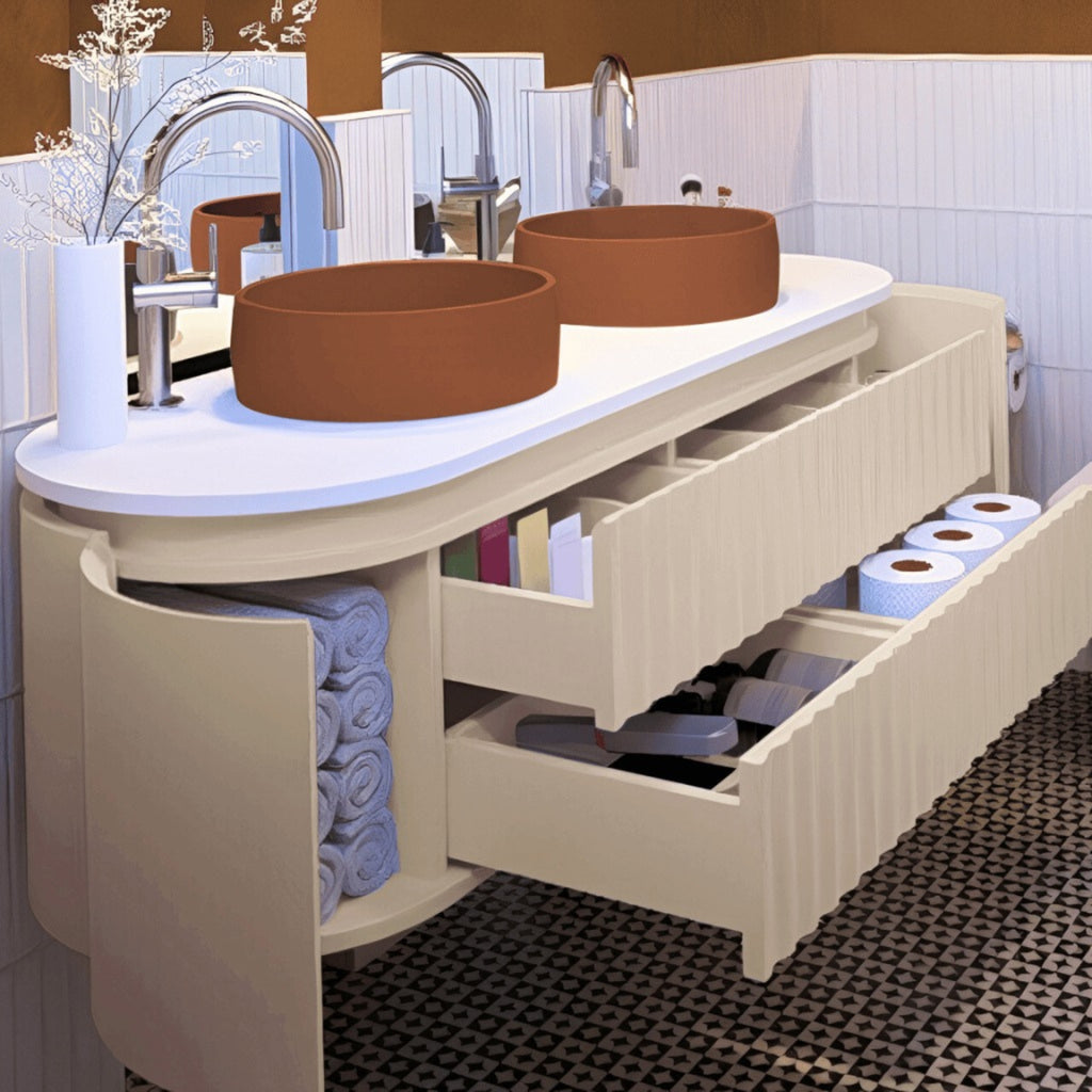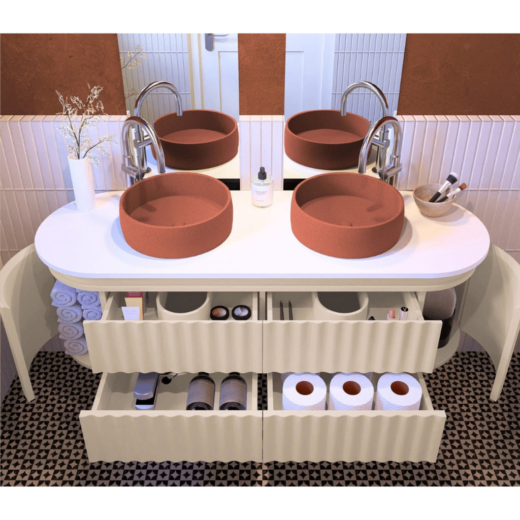 JOINERY BY BEARS WAVE SANDY 1500MM CURVE DOUBLE BOWL WALL HUNG VANITY