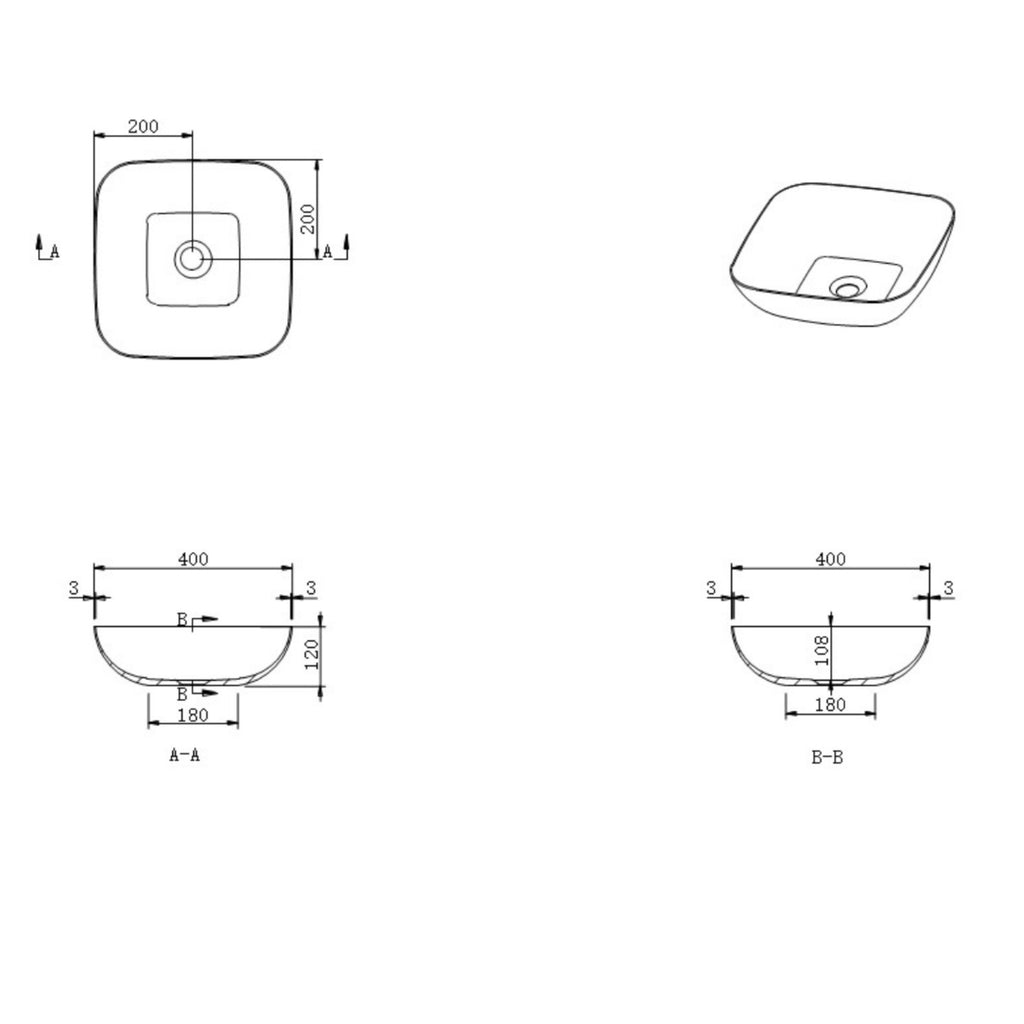 KASKADE VXA23 SQUARE ABOVE COUNTER STONE BASIN MATTE WHITE 400MM