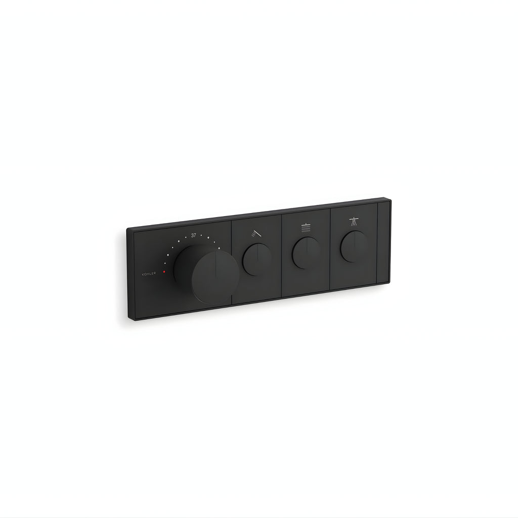 KOHLER ANTHEM THREE OUTLETS RECESSED MECHANICAL THERMOSTATIC CONTROL PANEL AND VALVE COMPLETE KIT MATTE BLACK