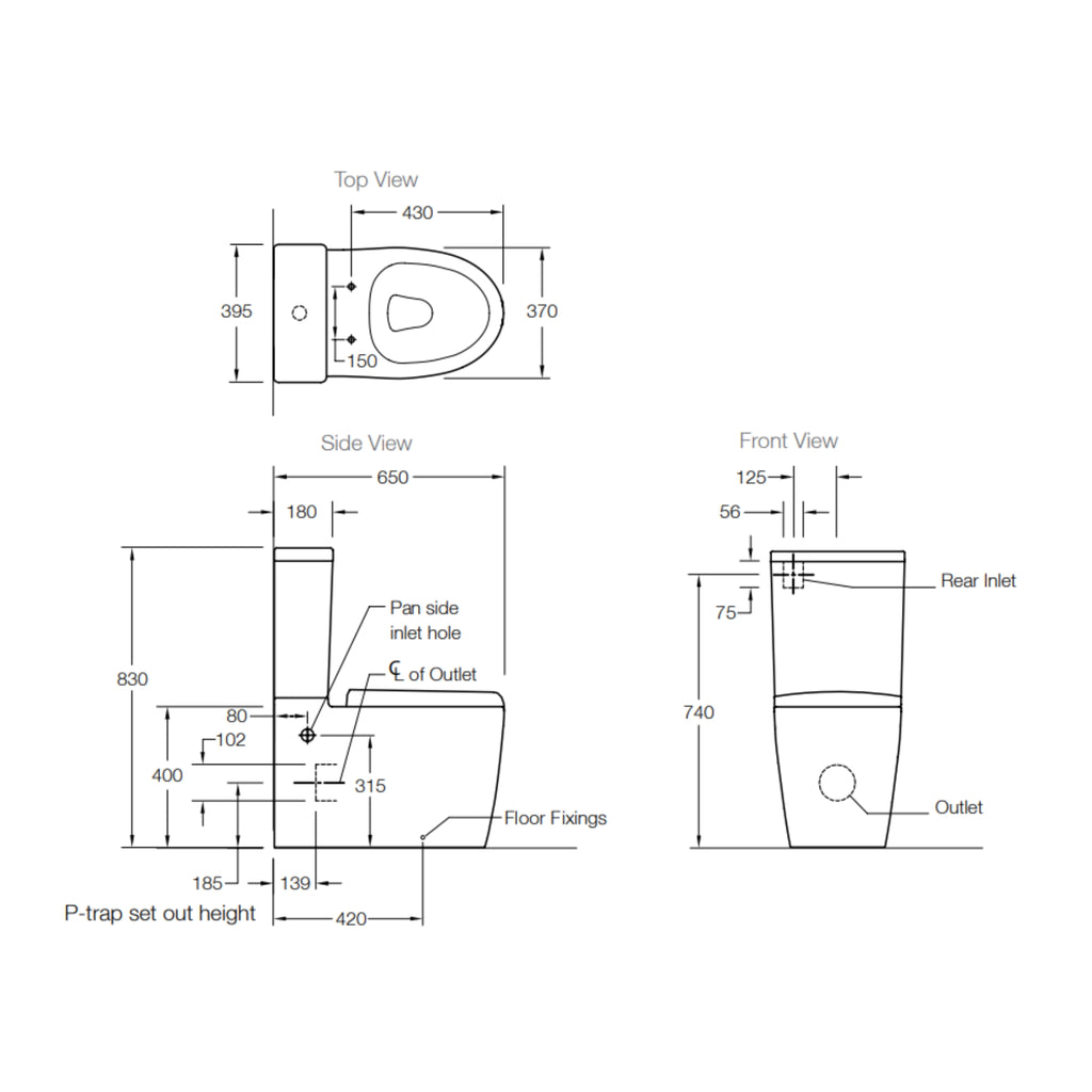 - Water Entry: Top Left Rear Entry or Right/Left Pan Side Entry