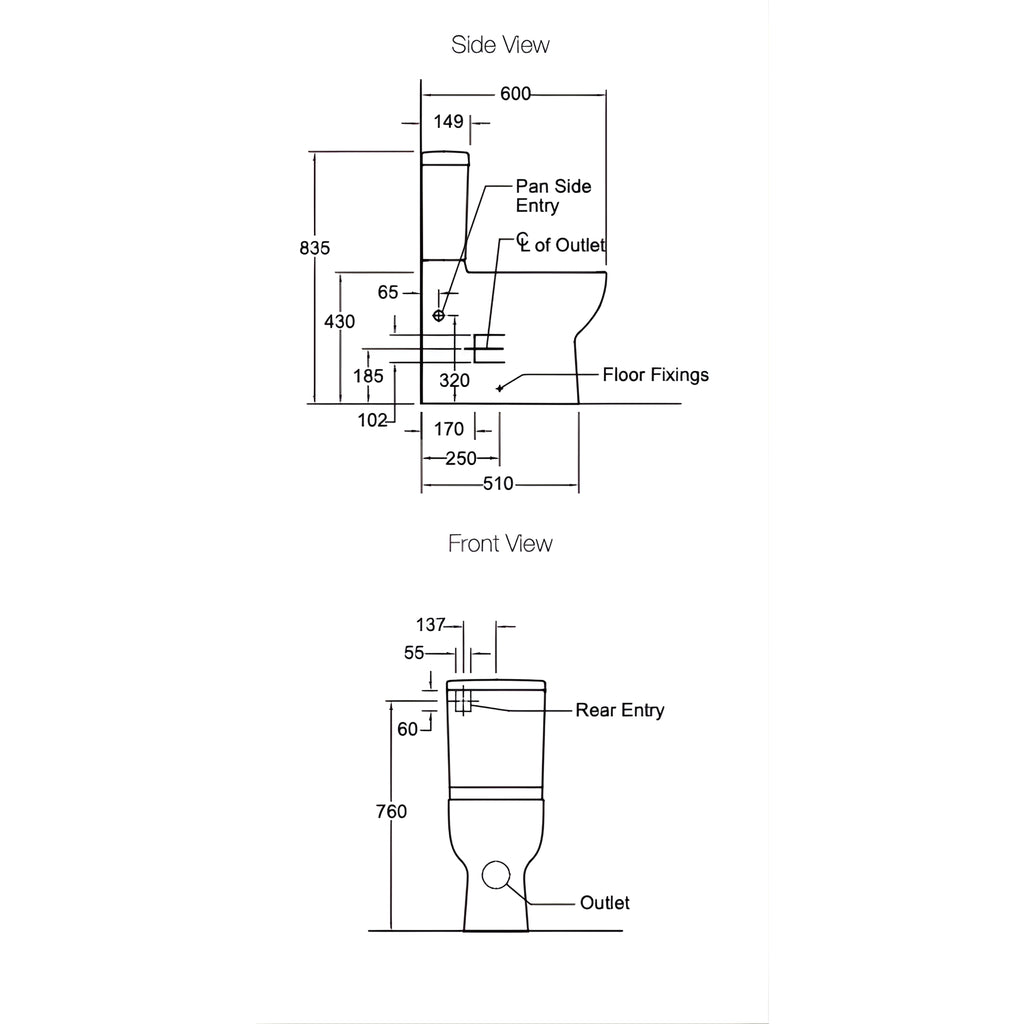 - Water Entry: Top Left Rear Entry or Right/Left Pan Side Entry