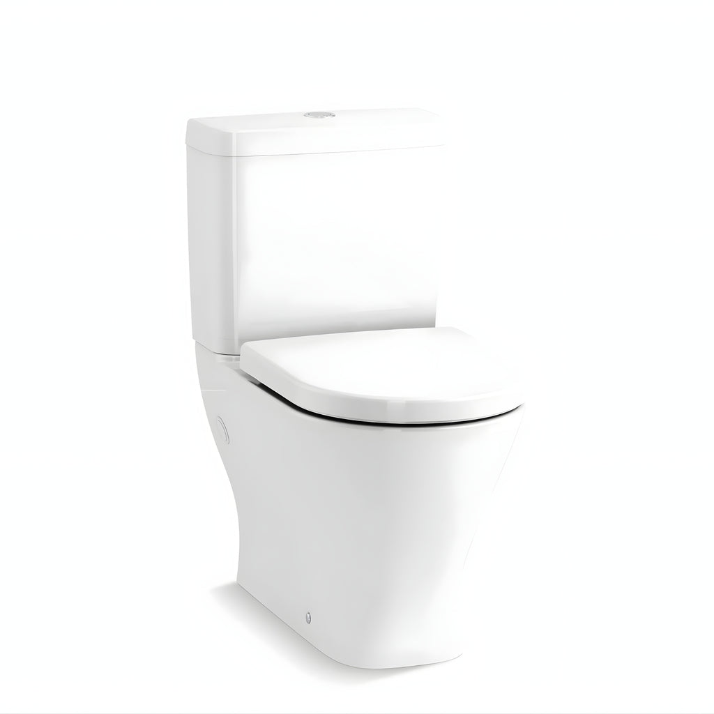 The Kohler Reach II Back-To-Wall Rimless Toilet with Wrap Over Seat Gloss White delivers modern performance in any bathroom. Crafted from durable vitreous china, this back to wall design features a HygieneMax® rimless pan, concealed trapway, and a Quiet Close™, Quick Release seat. Its dual flush system enhances water efficiency, while flexible water entry options simplify installation. Finished in elegant gloss white, it blends style, hygiene, and practicality seamlessly for everyday bathroom use and comfort.