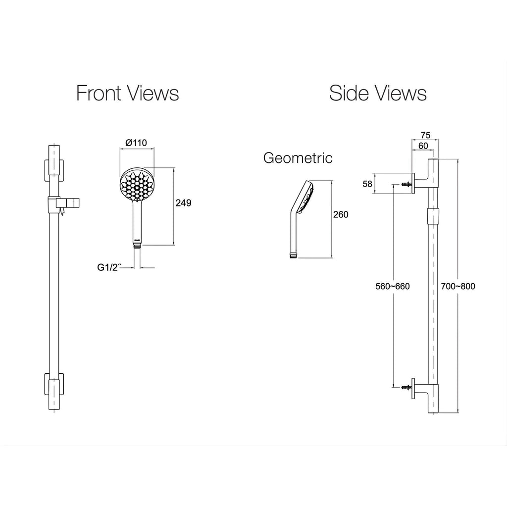 - Included Components: Shower Head, Wall Bracket & SlideBar, Elbow