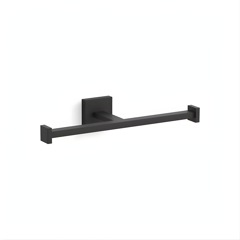 The Kohler Square Double Toilet Paper Holder in Matte Black offers striking, functional storage designed to hold two rolls of toilet paper. Measuring 268mm, this holder is crafted from durable premium metal construction. It perfectly coordinates with other products in the Square Collection for a cohesive, modern aesthetic. The unit includes all installation hardware. Its resilient finish actively resists corrosion and tarnishing, guaranteeing lasting depth and function, secured by a generous 10-year (parts only) warranty.