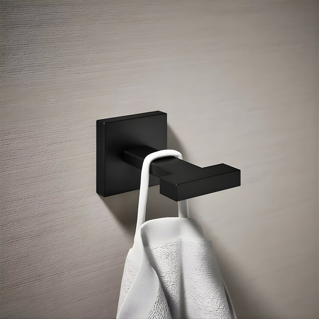 The Kohler Square Robe Hook in Matte Black provides stylish, convenient hanging storage of robes, towels, and other bath items. Crafted from durable premium metal construction, this robe hook features a striking, geometric design. It perfectly coordinates with other products in the Square Collection for a cohesive, modern aesthetic. Its resilient finish actively resists corrosion and tarnishing, guaranteeing lasting depth and function. The fixture includes all necessary hardware and is secured by a generous 10-year (parts only) warranty.