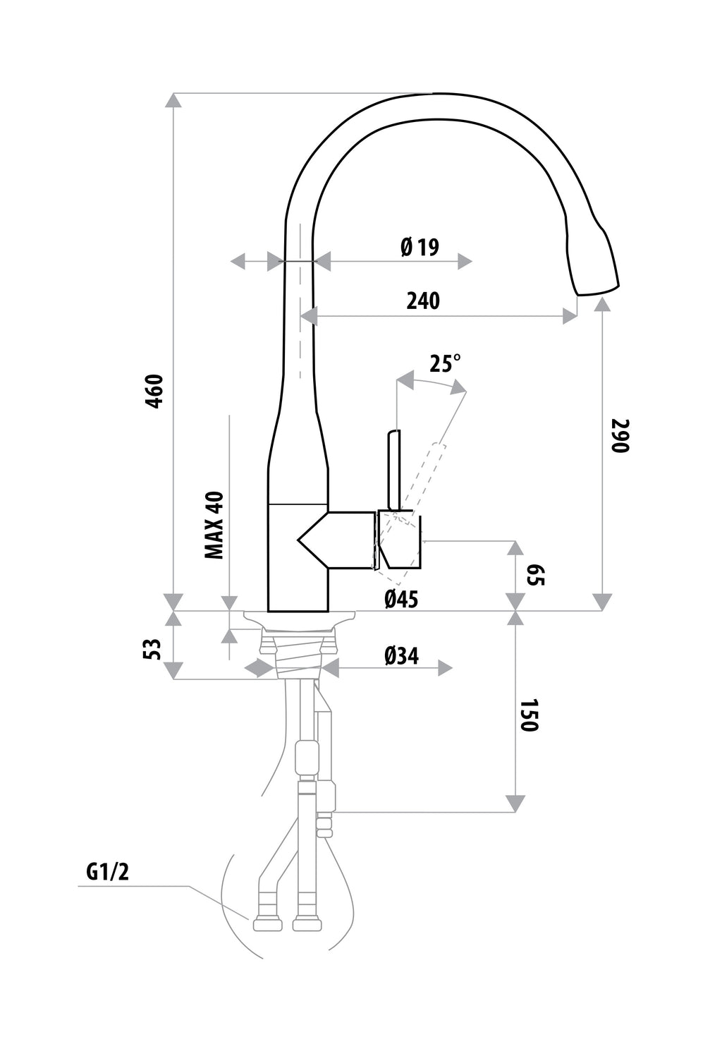 LINKWARE ELLE STEEL PULL OUT MIXER 460MM MATTE BLACK