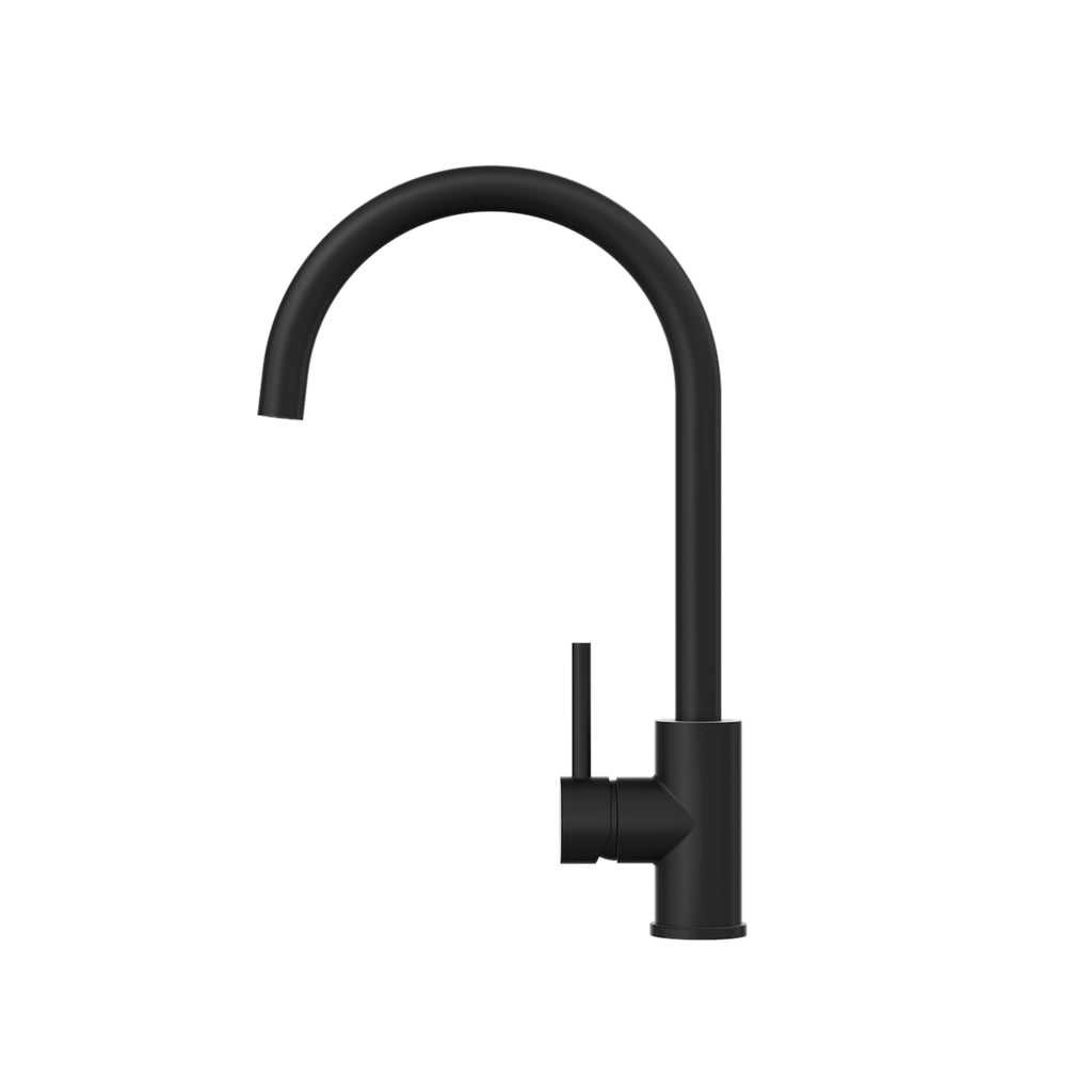 The Linsol Louis Lead Free Sink Mixer in Matte Black blends modern aesthetics with 304 stainless steel durability. Its sleek gooseneck design enhances any kitchen while the lead-free construction ensures better hygiene. The smooth single-lever handle allows easy temperature and flow control, while the strengthening plate adds stability. With a 4-star WELS rating and 7.5L/min flow rate, it offers efficiency and performance. Available in Brushed Brass, Brushed Nickel, and Gun Metal. Backed by a lifetime replacement warranty.
