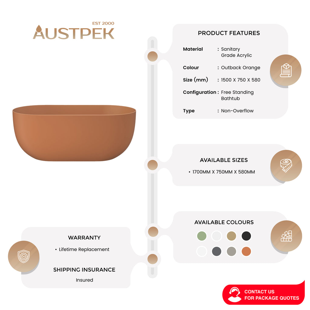 LINSOL NORA FREESTANDING BATHTUB OUTBACK ORANGE (AVAILABLE IN 1500MM AND 1700MM)