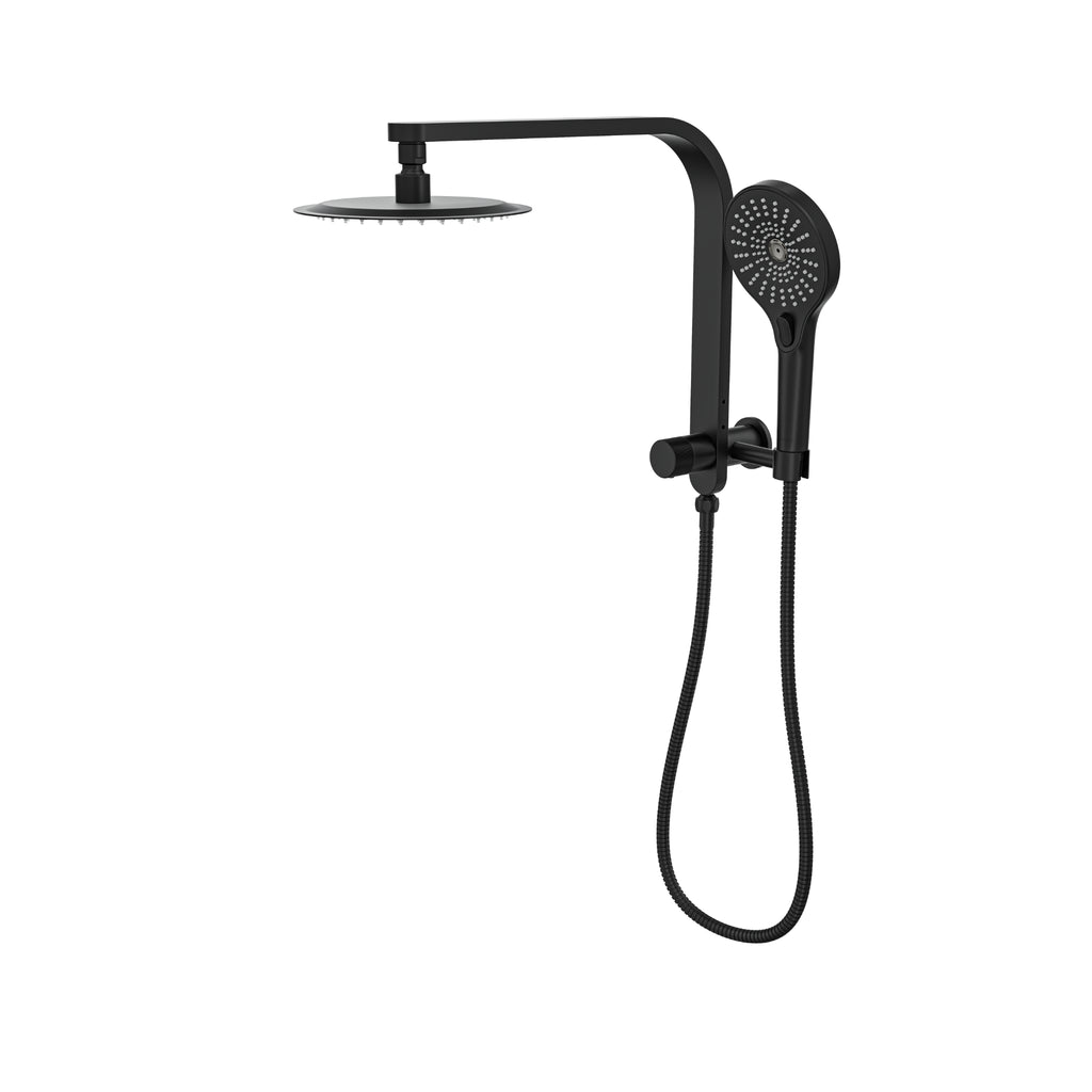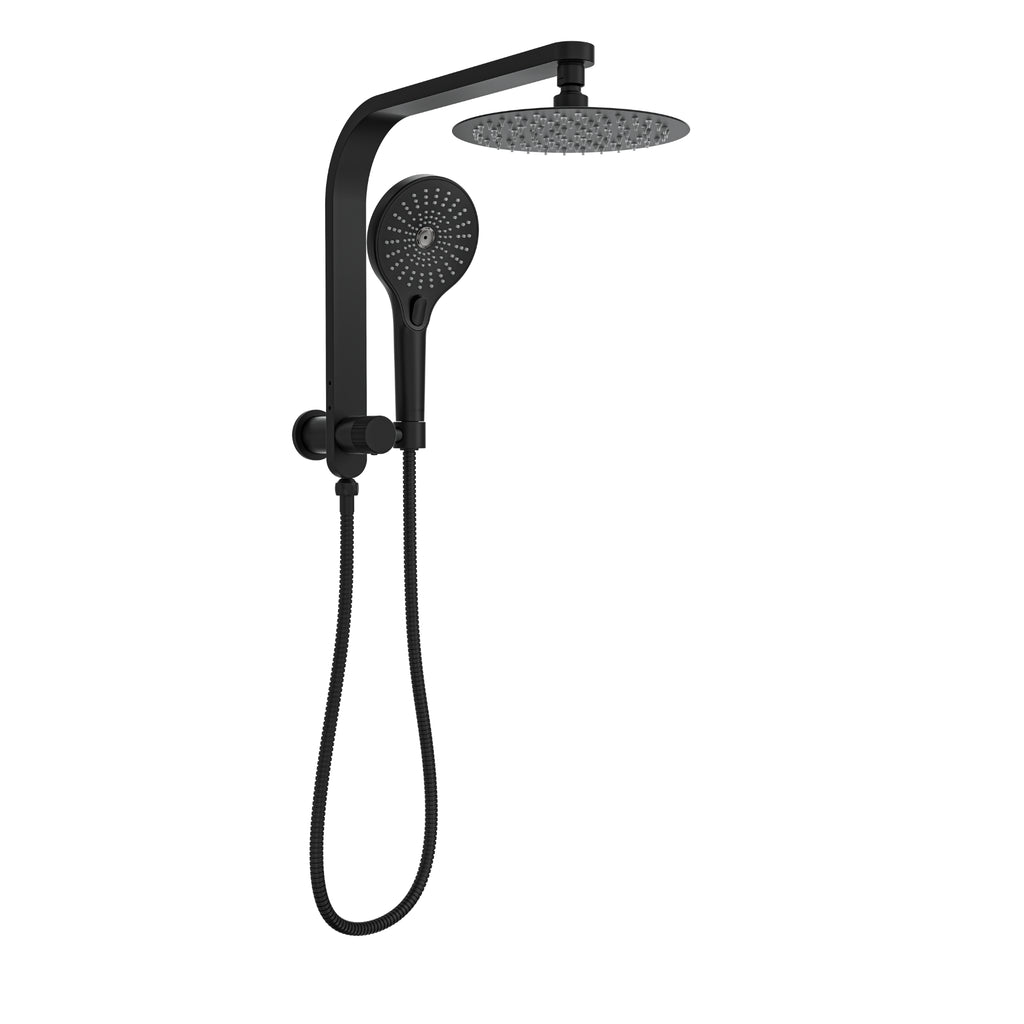 The Linsol Oceanjet Twin Shower System Matte Black offers a perfect blend of provincial elegance and modern functionality. Featuring a 200mm overhead shower and versatile handheld unit, this dual system ensures a comfortable, flexible shower experience. With a 4 Star WELS rating and 7L/min flow rate, it promotes water efficiency. PVD treated for added durability and corrosion resistance. Also available in Brushed Bronze, Brushed Brass, Brushed Nickel, Chrome and Gun Metal Backed by a lifetime replacement, 1-year labour, and 5-year finish warranty