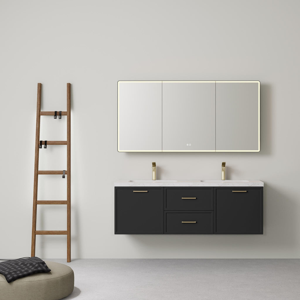 LUKKA KINGSLEY FEDERATION MATTE BLACK 1500MM DOUBLE BOWL WALL HUNG VANITY