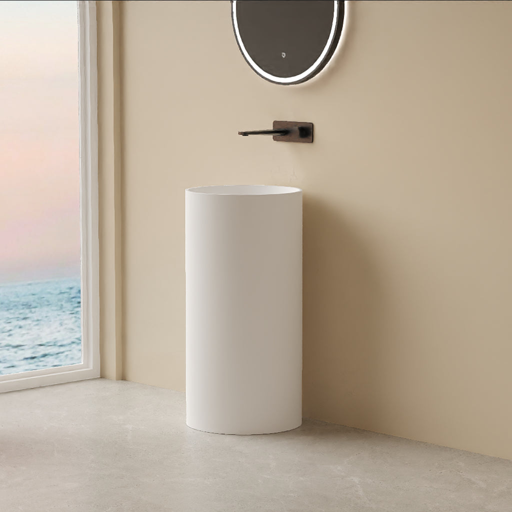 The Lukka Olley Solid Surface Stone Pedestal Basin in Matte White (450mm) offers a sleek, modern design crafted from high-quality solid surface stone for lasting durability and elegance. Its compact size makes it ideal for contemporary bathrooms seeking minimalist appeal. This basin comes with a 20-year replacement product warranty and 1-year labour warranty for domestic use, ensuring long-term peace of mind. For commercial settings, it includes a 1-year replacement product warranty, balancing style with reliability.
