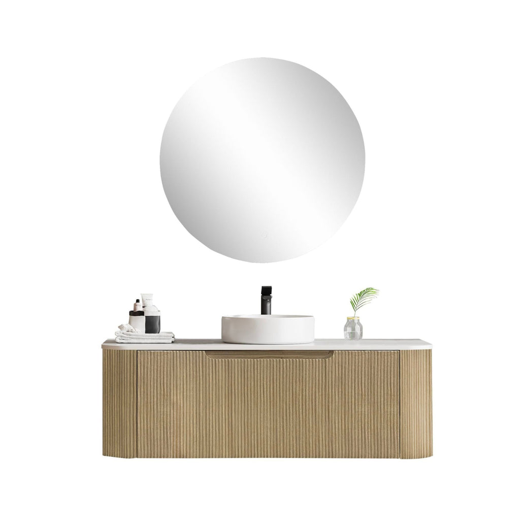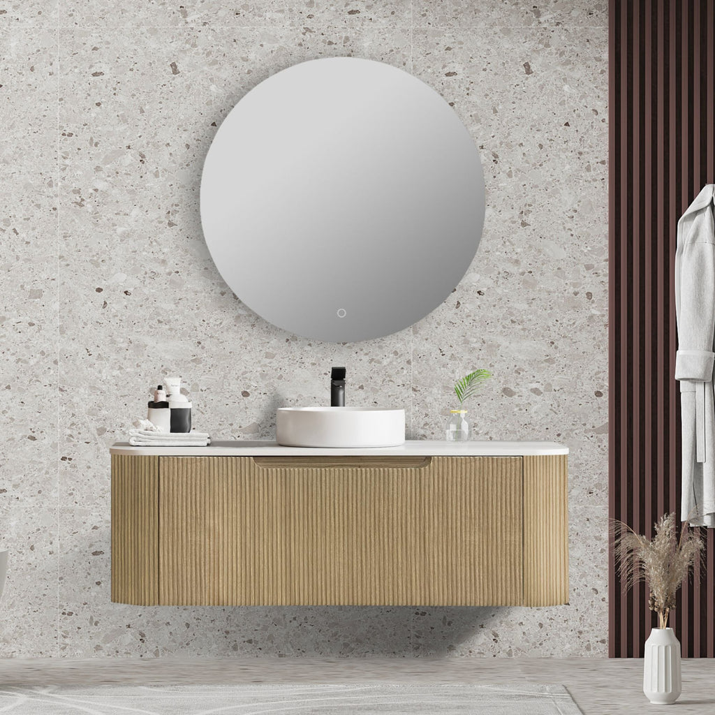 MERCIO ROME BUR OAK FLUTED 1200MM SINGLE BOWL WALL HUNG VANITY
