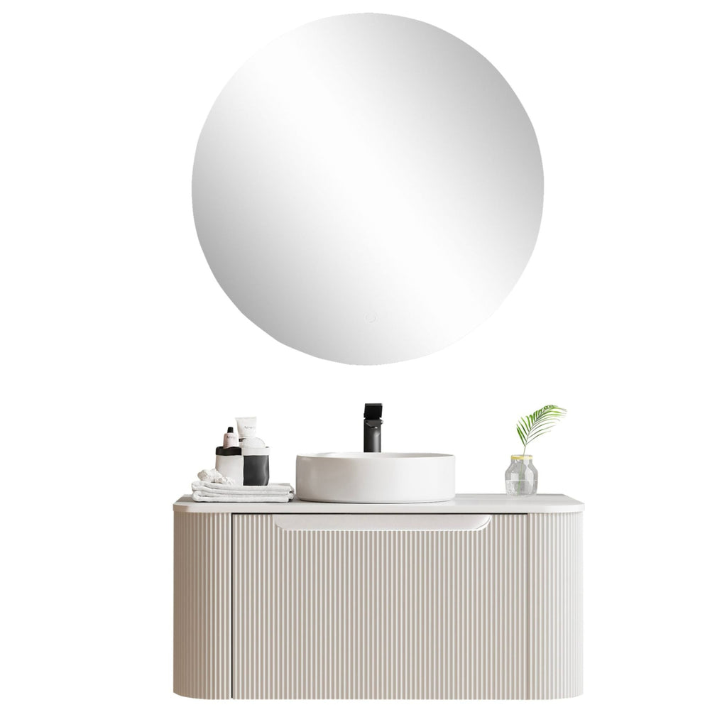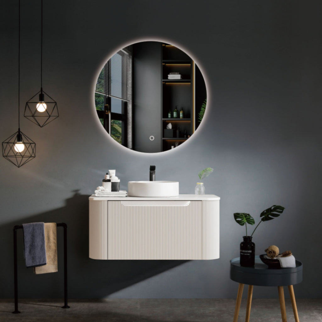 MERCIO ROME MATTE WHITE FLUTED 900MM SINGLE BOWL WALL HUNG VANITY
