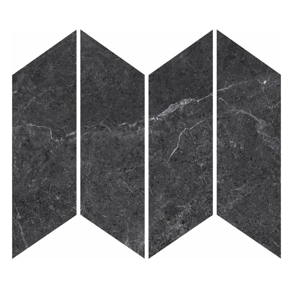 MUSES PETRA MIX BLACK FELLTEC 73X260MM CHEVRON MOSAIC TILE (PER BOX)