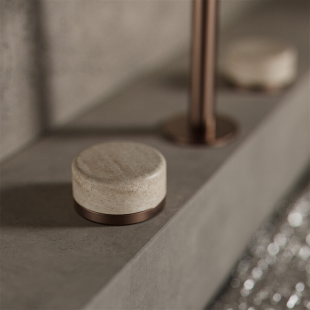 NERO SERENITY BASIN SET EDGE SPOUT WITH ROME TRAVERTINE HANDLE 210MM BRUSHED BRONZE