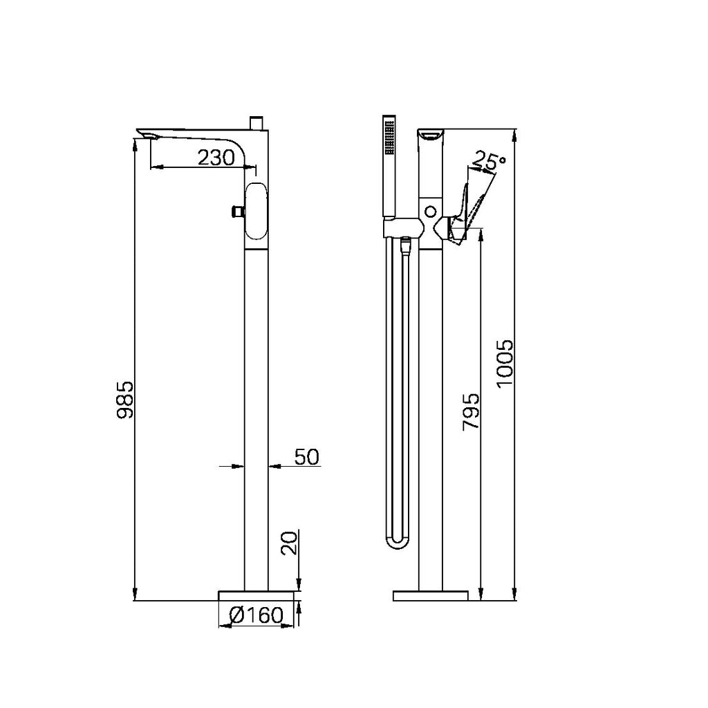 The Nero Bianca Freestanding Bath Mixer With Hand Shower 1005mm delivers a refined freestanding solution for contemporary bathrooms. Crafted from solid brass, it provides durability and smooth performance while the integrated hand shower adds everyday practicality. The minimalist silhouette complements modern and classic spaces alike. Available in Brushed Bronze, Brushed Gold, Brushed Nickel, Chrome, Gun Metal, and Matte Black. Domestic warranty includes 25 years replacement on finishes and hand shower components, plus 2 years replacement parts and labour.