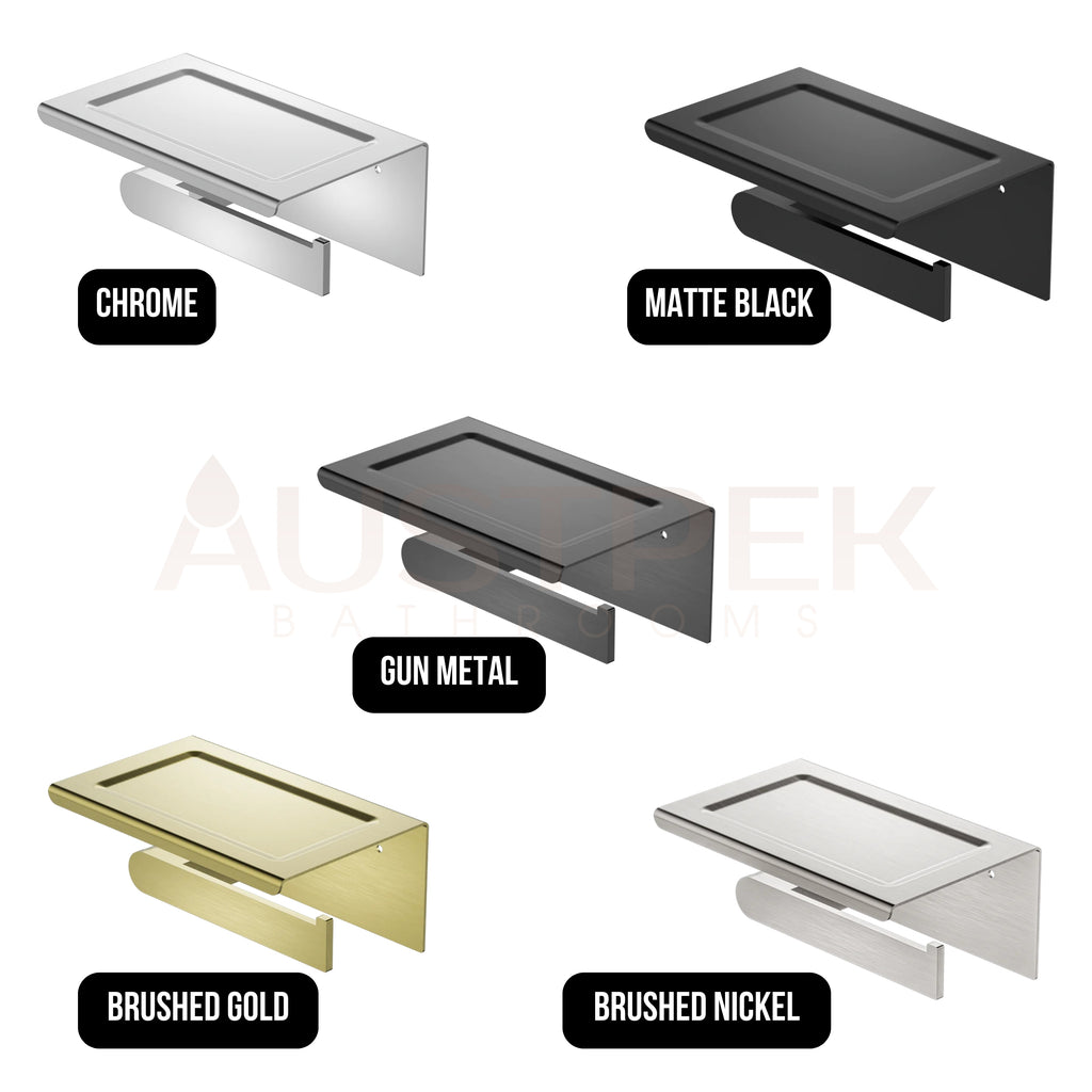 The Nero Bianca Toilet Roll Holder with Phone Holder, extending 185mm, is a unique blend of functionality and style for modern bathrooms. Made from durable brass, it comes in a variety of finishes: Gun Metal, Matte Black, Brushed Nickel, Brushed Gold, and Chrome. This innovative holder is backed by a 10-year warranty for replacement of products or parts across all finishes, ensuring its longevity and adding a touch of convenience and luxury to your bathroom space.