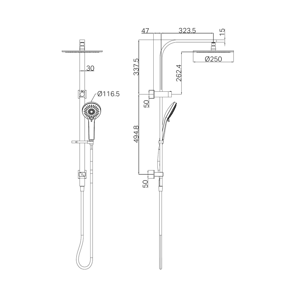 - Flow Rate: 7.5L/Min(Overhead Shower) | 7.5L/Min (Hand Shower)
