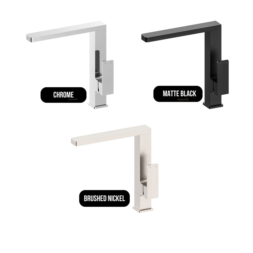 The Nero Celia Kitchen Mixer 263mm combines elegance and reliability with its solid brass construction and lead-free certification. Featuring a 25mm ceramic disc cartridge, it provides precise control of water flow and temperature, while the Neoperl aerator ensures optimal performance. Designed for durability, it includes stainless steel PEX hoses for flexible installation. Available in Chrome, Brushed Nickel, and Matte Black, it operates between 150kPa and 500kPa and is backed by a comprehensive warranty.